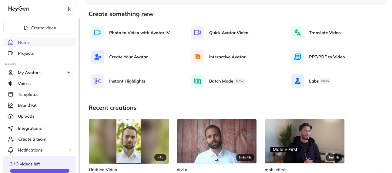 Account erstellen: Auf heygen.com (kostenlose Test-Credits)